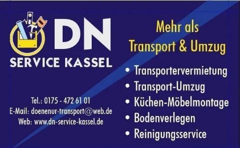 Kontaktieren Sie uns noch heute, um mehr über unsere Dienstleistungen zu erfahren oder um einen Termin zu vereinbaren. Wir sind für Sie da, um Ihnen bei Transport, Umzügen, Bodenverlegung, Reinigung und Küchen-Möbelmontage zu helfen. DN Service Kassel-Ihre vertrauenswürdige Wahl für Dienstleistungen, auf die Sie zählen können!